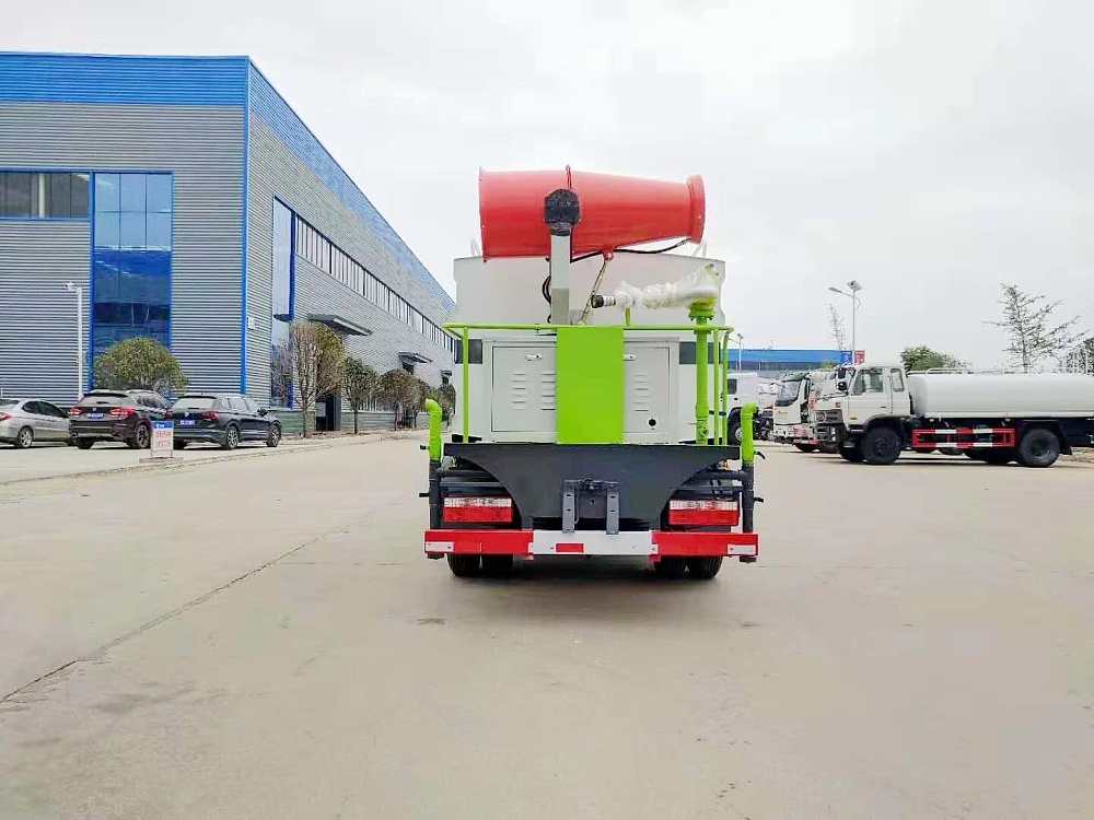 配置說明霧炮機(jī)具有自主**技術(shù),**號(hào)為(201621305361.8 / 201630487869.3),十五年制造經(jīng)驗(yàn),產(chǎn)品全面通過湖北省及本地質(zhì)檢局檢驗(yàn)合格,可根據(jù)需求選配不同的射程規(guī)格,可遠(yuǎn)程無線遙控操作作業(yè),采用國內(nèi)外知名發(fā)電機(jī)組及風(fēng)扇電機(jī)、電控系統(tǒng)、大功率水泵。抑塵車具有灑水車的全部功能:前部沖洗路面噴灑裝置、后部扇形降塵噴灑裝置,兩側(cè)噴灑裝置,后部大工作平臺(tái)、平臺(tái)上安裝綠化灑水炮(炮噴射形狀可調(diào)),可調(diào)直沖狀、大雨、中雨、毛毛雨,可連續(xù)調(diào)節(jié),其它:自流閥及消防接頭、水管3米2根,罐體防腐處理。